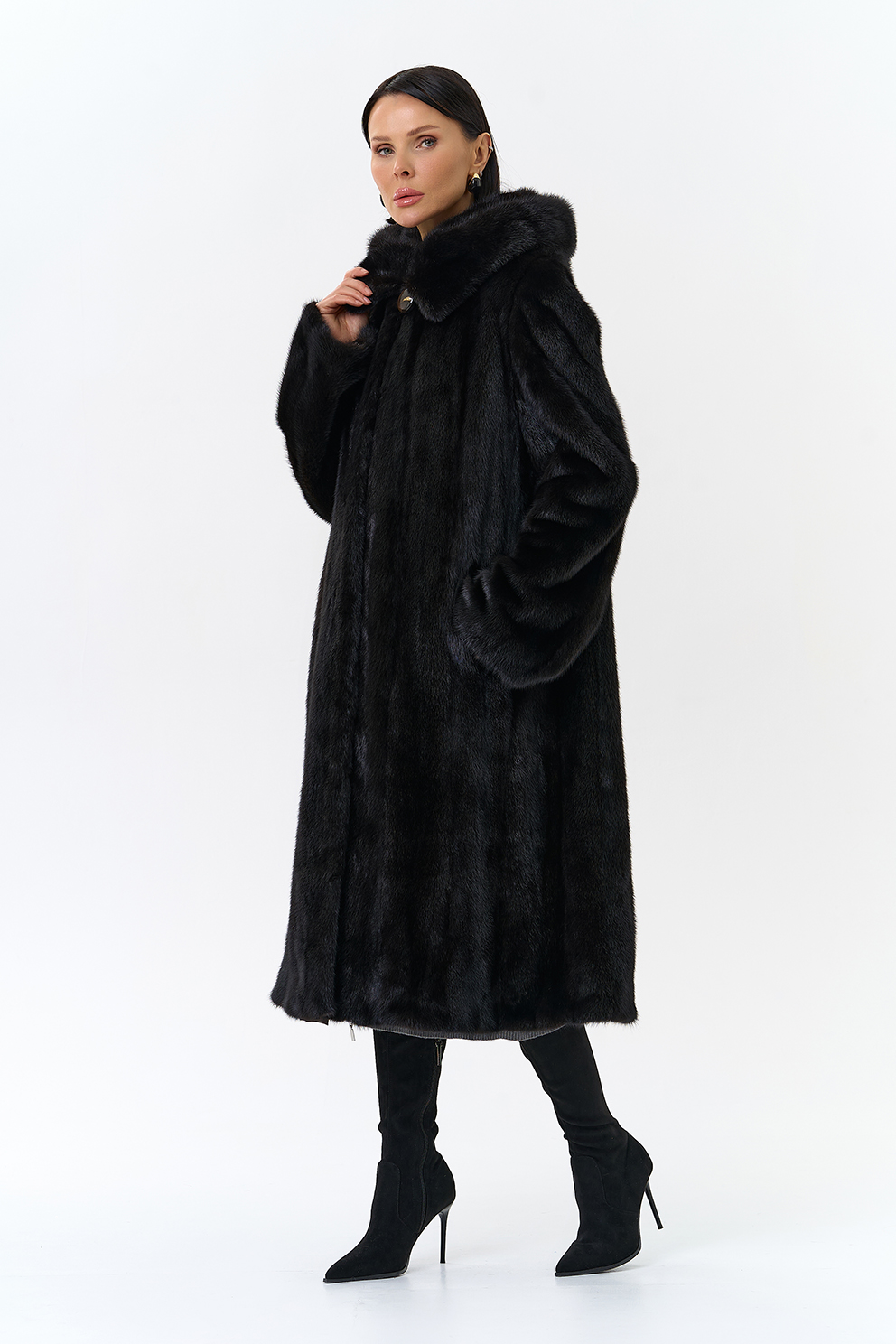 Шуба из норки с капюшоном